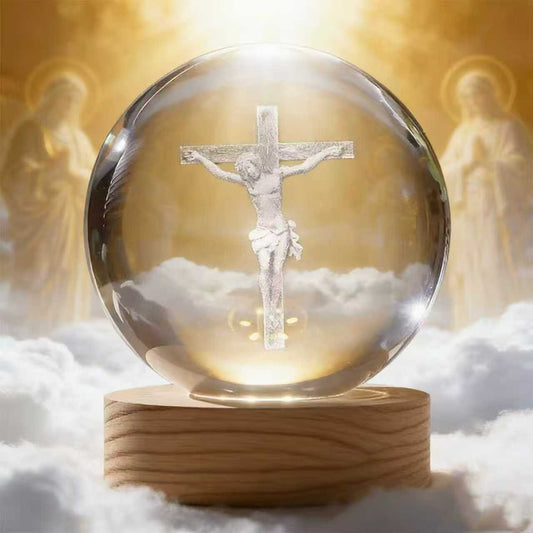 Luminária Decorativa Esfera de Cristal 3D - Edição Arte e Fé com Base LED