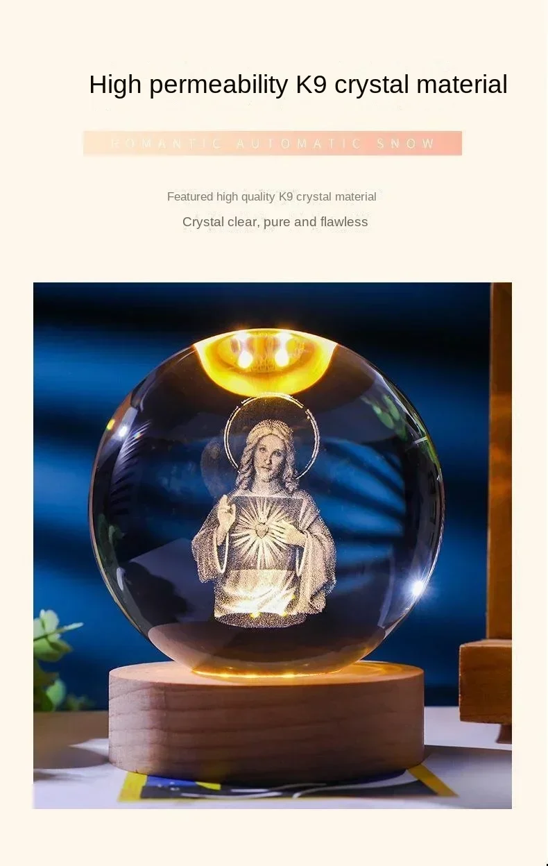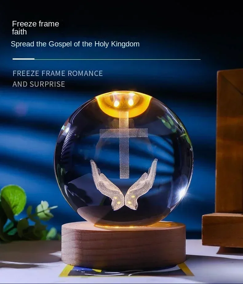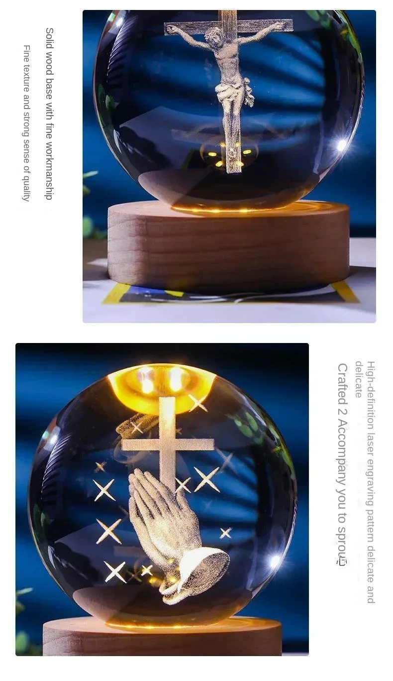 Luminária Decorativa Esfera de Cristal 3D - Edição Arte e Fé com Base LED